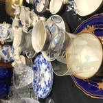 Housewares & Kitchenware: Quality pieces include Meissen plates & bowls, early etched glasses, cobalt blue stemware, tons of blue & white china, local artisan ceramics, hand thrown pottery, pots & pans, Espresso maker, tea pots & much more. Housewares include multiple quality printers, basketry, Japanese & Tibetan umbrellas, Singer sewing machine with case, accessories & table in excellent condition, wooden & enamel trunks, towels, lots of quality storage boxes, office desks, tv & cd players.
