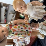 Dolls: Still a nice selection of vintage and antique dolls including kewpies & snow babies. Doll accessories & Steiff animals are also on offer.